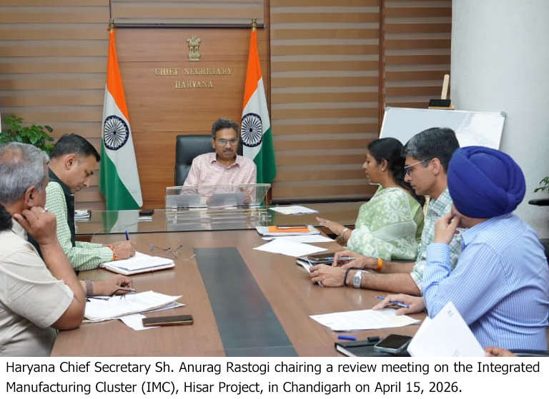 चंडीगढ़, 15 अप्रैल। हरियाणा के मुख्य सचिव अनुराग रस्तोगी ने आज यहां एक उच्च स्तरीय बैठक में महत्वाकांक्षी इंटीग्रेटेड मैन्युफैक्चरिंग क्लस्टर (आईएमसी) हिसार परियोजना की प्रगति की समीक्षा के दौरान परियोजना से जुड़े महत्वपूर्ण निर्णयों को शीघ्रता से लागू करने के निर्देश दिए।