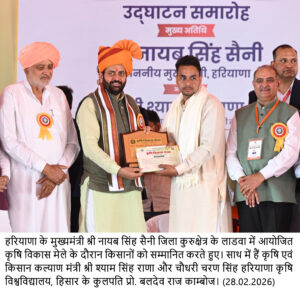 मुख्यमंत्री नायब सिंह सैनी ने कहा कि डिजिटल तकनीक ने खेती को बदल दिया है। ऐसे में सरकार ड्रोन, रिमोट सेंसिंग, एआई आधारित निर्णय प्रणाली और डिजिटल खेती जैसे नवाचारों को किसान भाइयों तक पहुंचाने का काम कर रहे हैं। सरकार ने पारदर्शी खरीद प्रणाली, समय पर भुगतान और डिजिटल प्लेटफॉर्म के माध्यम से किसानों को सशक्त बनाने की दिशा में कार्य किया है। यह कृषि विकास मेला उसी दिशा में एक मजबूत कदम है। यहां से जो ज्ञान, जो प्रेरणा, जो ऊर्जा आप लेकर जाएंगे, वह आपके खेतों में नई कहानी लिखेगी।
