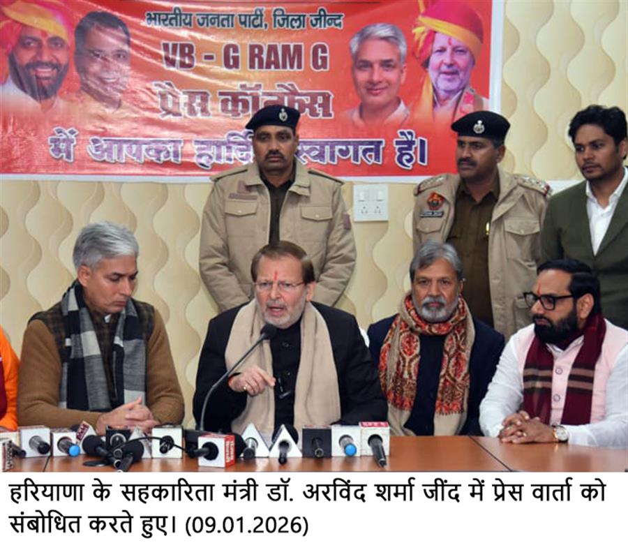 चंडीगढ़, 9 जनवरी : हरियाणा के सहकारिता, कारागार, निर्वाचन, विरासत एवं पर्यटन मंत्री डॉ. अरविंद शर्मा ने कहा कि प्रधानमंत्री नरेन्द्र मोदी द्वारा विकसित भारत जी राम जी कानून के माध्यम से देश के प्रत्येक मेहनतकश को आर्थिक एवं सामाजिक संरक्षण देना सुनिश्चित किया जाएगा। उन्होंने कहा कि मनरेगा का खामियों से भरा ढांचा देश और श्रमिकों दोनों के लिए अहितकारी था, जिसकी जगह जी राम जी कानून भ्रष्टाचार के खात्मे और श्रमिकों के शोषण को रोकने का प्रभावी माध्यम बनेगा।