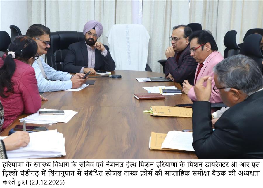 अवैध लिंगानुपात की जांच एवं गर्भपात को रोकने के लिए हरियाणा सरकार द्वारा गठित स्पेशल टास्क फ़ोर्स की आज फिर साप्ताहिक समीक्षा बैठक आयोजित की गई जिसकी अध्यक्षता स्वास्थ्य विभाग के सचिव एवं नेशनल हेल्थ मिशन हरियाणा के मिशन डायरेक्टर डॉ रिपुदमन सिंह ढिल्लो ने की।