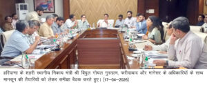 गुरुग्राम में हुई समीक्षा बैठक में गुरुग्राम, फरीदाबाद व मानेसर के अधिकारियों को दिए निर्देश
