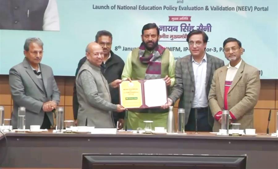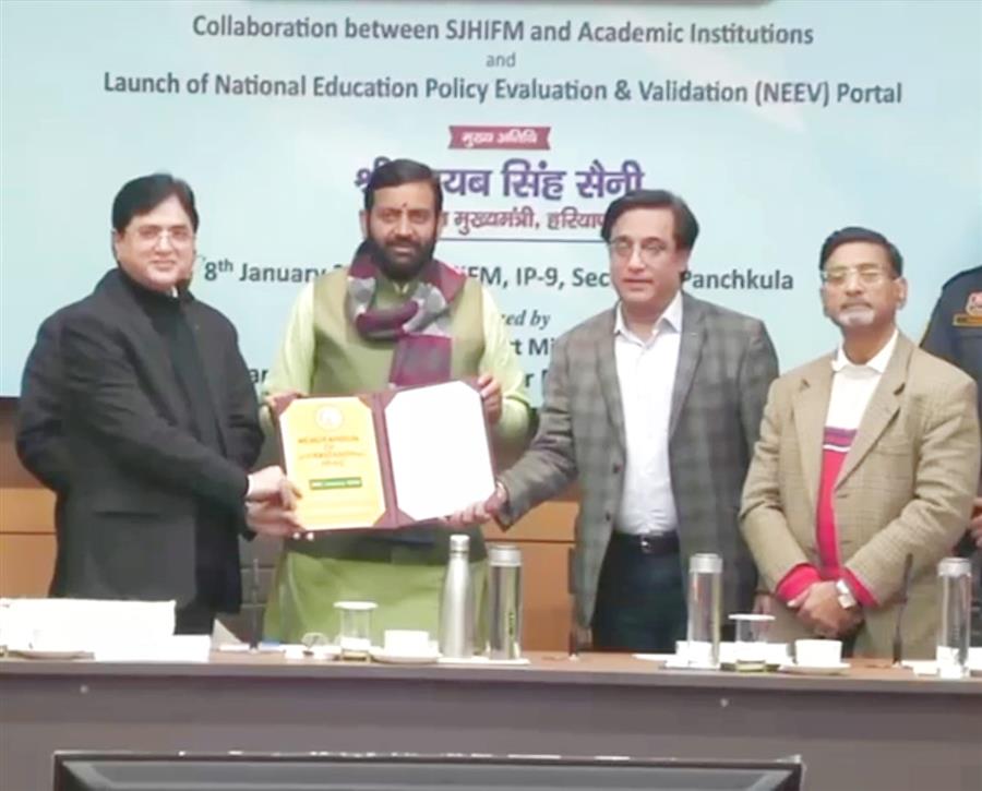 मुख्यमंत्री आज पंचकूला में आयोजित एमओयू एक्सचेंज कार्यक्रम के बाद पत्रकारों से बातचीत कर रहे थे। उन्होंने कहा कि नीव पोर्टल का मूल उद्देश्य यह सुनिश्चित करना है कि राष्ट्रीय शिक्षा नीति-2020 के प्रत्येक प्रावधान का वास्तविक, निष्पक्ष और सतत मूल्यांकन हो सके। यह पोर्टल रियल-टाइम डेटा, प्रदर्शन संकेतकों और भविष्यसूचक विश्लेषण के माध्यम से शिक्षा प्रणाली की निरंतर निगरानी करता है।