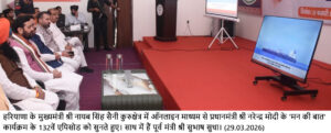 मुख्यमंत्री ने भाजपा जिला कार्यालय कुरुक्षेत्र में प्रधानमंत्री नरेंद्र मोदी के मन की बात कार्यक्रम का 132 वां संस्करण सुना