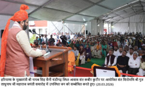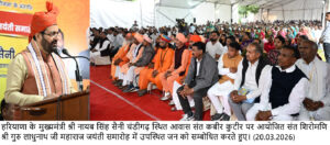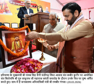 मुख्यमंत्री शुक्रवार को चंडीगढ़ स्थित संत कबीर कुटीर पर संत महापुरुष सम्मान एवं विचार प्रसार योजना के अंतर्गत आयोजित संत शिरोमणि श्री गुरु लाधुनाथ जी महाराज के जयंती समारोह पर संबोधित कर रहे थे।