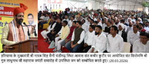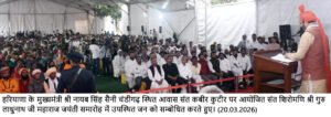 मुख्यमंत्री नायब सिंह सैनी ने कहा कि प्रधानमंत्री नरेन्द्र मोदी ले अनेक पिछड़ी जातियों को अनुसूचित जाति की सूची में शामिल किया, जिसके चलते समाज का यह वर्ग सुविधाओं का लाभ उठाकर प्रगति के रास्ते पर आगे बढ़ रहा हैं। डब्बल इंजन सरकार का लक्ष्य अंत्योदय है। यानि कि जो अंत में रह गया, उसे आगे बढ़ाना है, चाहे वह किसी भी क्षेत्र, वर्ग और सम्प्रदाय में हो। सरकार का यह प्रयास है कि सभी बिरादरी, सभी जातियों के लोग आगे बढ़े, सभी का उत्थान हो, सभी को समाज में बराबर के हक मिलें। सबका साथ – सबका विकास प्रदेश सरकार की नीतियों का केन्द्र बिन्दु है।