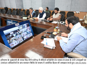 चंडीगढ़, 9 अप्रैल। हरियाणा के मुख्यमंत्री ने वीरवार को ऑनलाइन माध्यम से सभी जिलों से एक उच्चस्तरीय समीक्षा बैठक कर प्रदेशभर में संचालित समाधान शिविरों की प्रगति की विस्तृत समीक्षा की। इस दौरान उन्होंने विभिन्न जिलों से जुड़े नागरिकों की शिकायतें सीधे सुनीं और संबंधित अधिकारियों को उनके शीघ्र एवं प्रभावी समाधान के निर्देश दिए।