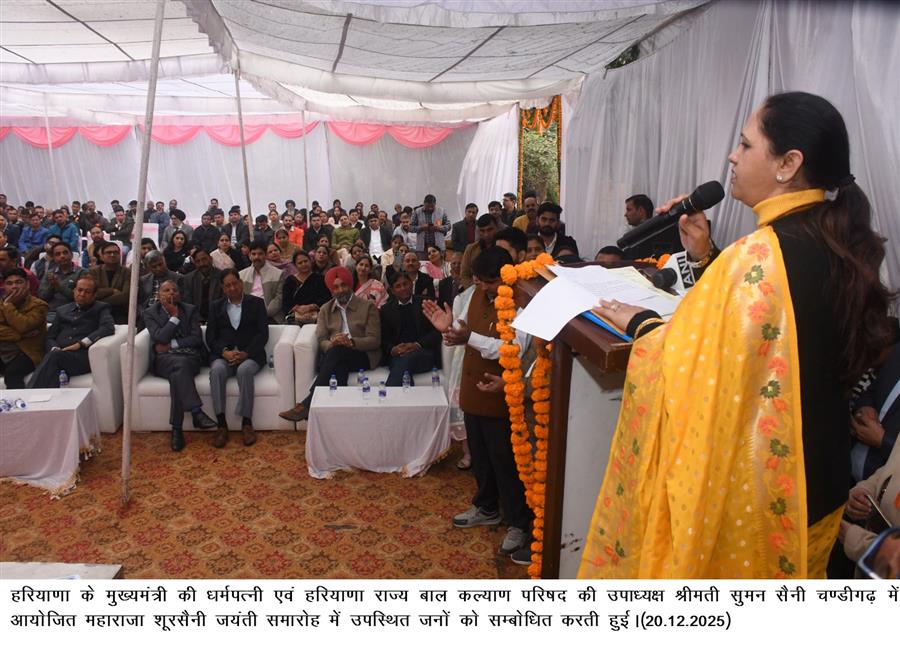 चंडीगढ़, 20 दिसंबर : हरियाणा के मुख्यमंत्री की धर्मपत्नी एवं हरियाणा राज्य बाल कल्याण परिषद की उपाध्यक्ष सुमन सैनी ने कहा कि समाज और राष्ट्र की निरंतर प्रगति के लिए प्रत्येक नागरिक को किसी न किसी रूप में सेवा कार्यों से जुड़ा रहना चाहिए। हम सभी का जीवन केवल अपने लिए नहीं, बल्कि समाज और देश के हित में समर्पित होना चाहिए। जब प्रत्येक व्यक्ति अपने कर्तव्यों को समझते हुए समाज कल्याण के लिए योगदान देगा, तभी राष्ट्र सशक्त, समृद्ध और विकसित बन सकेगा।