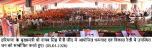 रैली में उपस्थित भारी भीड़ को संबोधित करते हुए मुख्यमंत्री नायब सिंह सैनी ने कहा कि जींद की यह भूमि परिश्रम और प्रगति का संगम है। यह हरियाणा की वह धड़कन है, जहां जब किसान का पसीना मिट्टी में मिलता है, तो देश के अन्न भंडार भर जाते हैं। मैं इस वीर भूमि पर आयोजित इस धन्यवाद व विकास रैली में आए सभी बुजुर्गो, माताओं-बहनों और युवा साथियों का हार्दिक वंदन करता हूं।