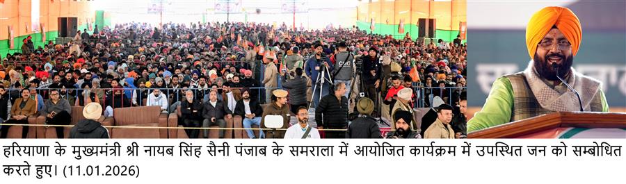 चंडीगढ़, 11 जनवरी : हरियाणा के मुख्यमंत्री नायब सिंह सैनी ने पंजाब की आम आदमी पार्टी की सरकार पर निशाना साधते हुए कहा कि देश और प्रदेश को अनुभवी, जिम्मेदार और जनहित के प्रति समर्पित शासन की आवश्यकता है। राजनीति सत्ता सुख का साधन नहीं, बल्कि सेवा का माध्यम होनी चाहिए, लेकिन पंजाब सरकार ने इसे सत्ता सुख का साधन बना लिया है। मुख्यमंत्री ने पंजाब की गुरु परंपरा का उल्लेख करते हुए लोगों से आह्वान किया कि वे अन्याय और झूठ की राजनीति को नकारते हुए विकास, ईमानदारी और राष्ट्रहित आधारित सुशासन को मजबूत करने में अपना योगदान दें। मुख्यमंत्री रविवार को पंजाब के लुधियाना जिले के समराला में आयोजित जनसभा को संबोधित कर रहे थे।