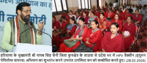 मुख्यमंत्री नायब सिंह सैनी ने लाडवा से किया एच.पी.वी. टीकाकरण अभियान का शुभारंभ