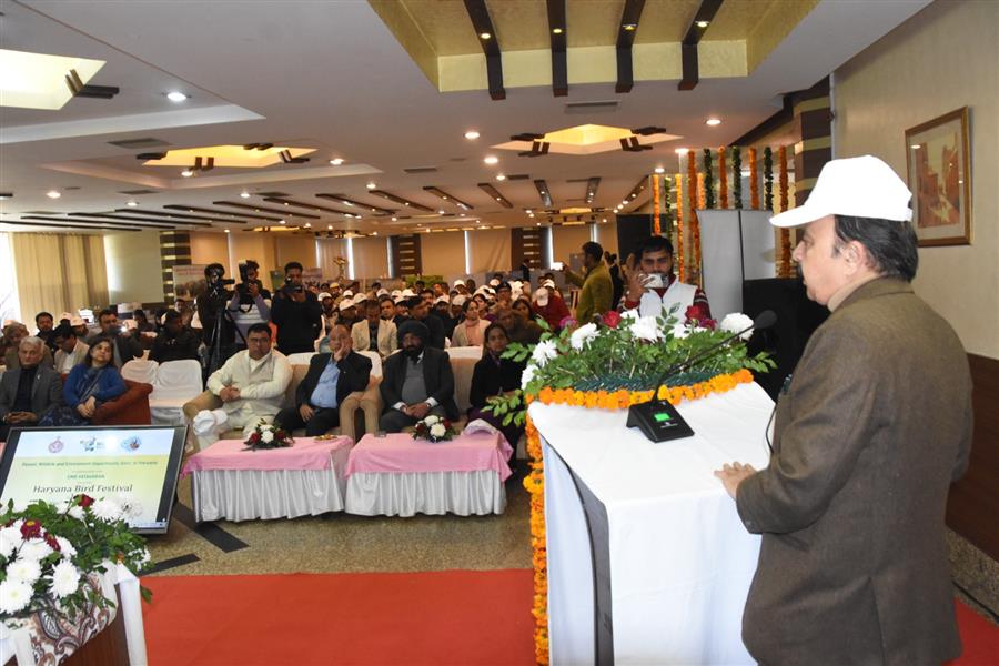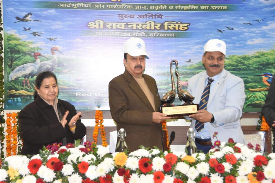 राव नरबीर सिंह ने कार्यक्रम के शीर्ष वाक्य “आर्द्रभूमियां और पारंपरिक ज्ञान-प्रकृति एवं संस्कृति का उत्सव” की सराहना करते हुए कहा कि हरियाणा में सुल्तानपुर (गुरुग्राम) और भिंडावास (झज्जर) दो प्रमुख वेटलैंड हैं, जहां हर वर्ष हजारों प्रवासी पक्षी विभिन्न देशों से आते हैं। उन्होंने कहा कि कोरोना काल के दौरान कुछ प्रजातियां विलुप्त होने के कगार पर पहुंच गई थीं, लेकिन सरकार का प्रयास है कि वेटलैंड्स पर आने वाले पक्षियों के लिए सभी आवश्यक सुविधाएं उपलब्ध कराई जाएं, ताकि हर वर्ष अधिक संख्या में प्रवासी पक्षी यहां आएं।