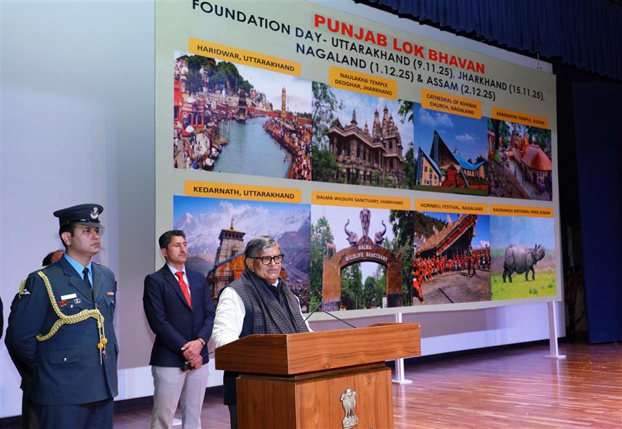 चंडीगढ़, 4 दिसंबर 2025 : पंजाब लोक भवन, चंडीगढ़ में आज शाम “एक भारत, श्रेष्ठ भारत” पहल के तहत उत्तराखंड, झारखंड, असम और नागालैंड का स्थापना दिवस मनाया गया। अपने संबोधन में माननीय राज्यपाल गुलाब चंद कटारिया ने “राज भवन” से “लोक भवन” में देशभर में हो रहे परिवर्तन का स्वागत किया। उन्होंने कहा कि ऐसा नामकरण भारत की लोकतांत्रिक भावना और जनता की भागीदारी की आत्मा को दर्शाता है। उन्होंने सरदार वल्लभभाई पटेल की 562 रियासतों के एकीकरण और भारत को विभाजित करने की औपनिवेशिक साजिशों को विफल करने में उनकी ऐतिहासिक भूमिका को याद किया।