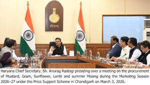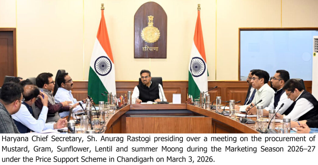 चंडीगढ़, 03 मार्च : हरियाणा में मसूर की खरीद 20 मार्च से 30 अप्रैल तक, सरसों की खरीद 28 मार्च से 1 मई तक, चने की खरीद 1 अप्रैल से 10 मई तक, ग्रीष्मकालीन मूंग की खरीद 15 मई से 20 जून तक और सूरजमुखी की खरीद 1 जून से 30 जून, 2026 तक की जाएगी। मुख्य सचिव अनुराग रस्तोगी ने आज यहां रबी विपणन सीजन 2026-27 के लिए मूल्य समर्थन योजना (पीएसएस) के अंतर्गत सरसों, चना, मसूर, सूरजमुखी तथा ग्रीष्मकालीन मूंग की खरीद को लेकर किए जा रहे प्रबंधों की व्यापक समीक्षा की।
