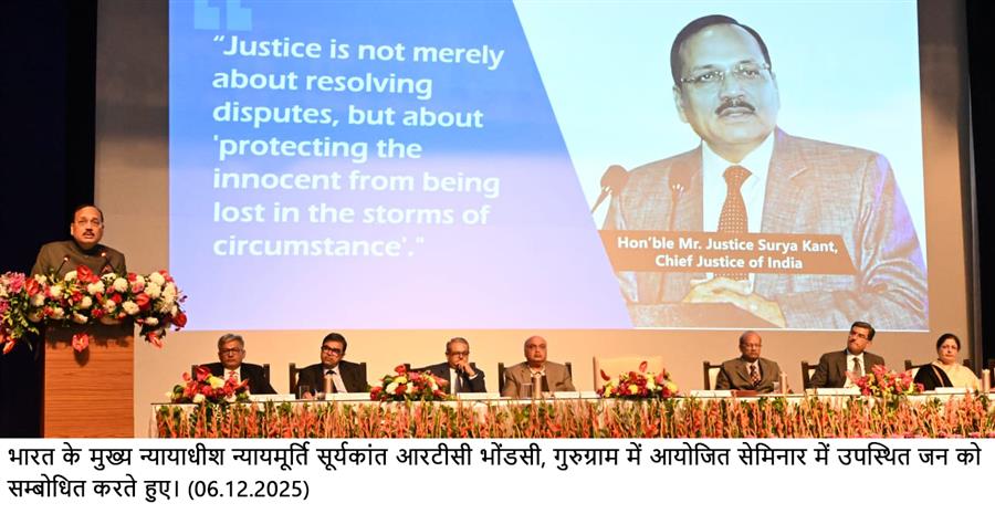 हरियाणा के मुख्य सचिव श्री अनुराग रस्तोगी ने कहा कि आज इस सेमिनार में सर्वोच्च न्यायालय के मुख्य न्यायाधीश जस्टिस सूर्यकांत व अन्य न्यायाधीशों ने अलग अलग विचार व सुझाव रखे। हम आप सभी के विचारों को मूर्त रूप देने की पूरी कोशिश करेंगें।