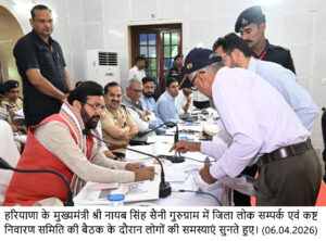मुख्यमंत्री सोमवार को गुरुग्राम में जिला लोक संपर्क एवं कष्ट निवारण समिति की बैठक की अध्यक्षता कर रहे थे। बैठक में हरियाणा के उद्योग एवं वाणिज्य मंत्री राव नरबीर सिंह, पटौदी विधायक बिमला चौधरी, सोहना विधायक तेजपाल तंवर, गुरुग्राम के विधायक मुकेश शर्मा भी उपस्थित रहे। बैठक में कुल 15 परिवाद रखे गए, जिनमें से मुख्यमंत्री ने 11 का मौके पर ही निपटारा किया।