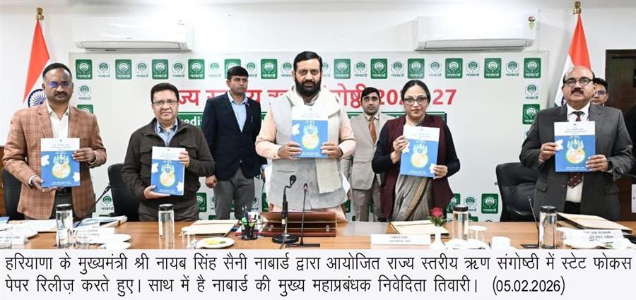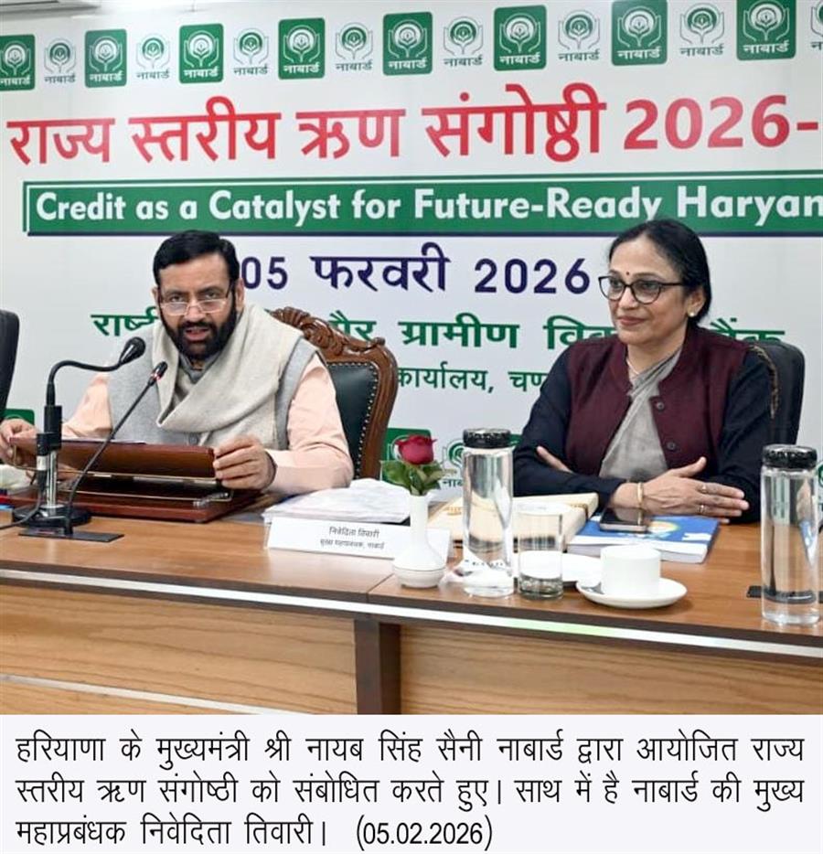 इस अवसर पर नाबार्ड की मुख्य महाप्रबंधक निवेदिता तिवारी ने मुख्यमंत्री व अन्य अतिथियों का स्वागत करते हुए विस्तार से नाबार्ड की रिपोर्ट प्रस्तुत की। उन्होंने बताया कि नाबार्ड द्वारा हरियाणा में वर्ष 2026-27 के लिए प्राथमिकता क्षेत्र ऋण (Priority Sector Lending) के अंतर्गत 3.67 लाख करोड़ रुपये की ऋण क्षमता का आकलन किया गया है, जो पिछले वर्ष की तुलना में 17 प्रतिशत अधिक है। इसमें कृषि क्षेत्र के लिए 1.32 लाख करोड़ रुपये तथा सूक्ष्म, लघु एवं मध्यम उद्यम (MSME) क्षेत्र के लिए 2.11 लाख करोड़ रुपये की ऋण संभावनाएं निर्धारित की गई हैं।