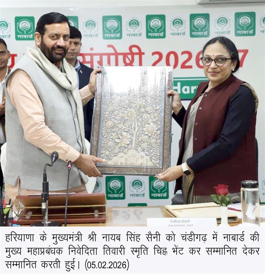 इस अवसर पर मुख्यमंत्री ने नाबार्ड द्वारा तैयार किया गया वर्ष 2026-27 का स्टेट फोकस पेपर भी रिलीज किया, जिसमें हरियाणा की प्राथमिकता क्षेत्र ऋण क्षमता 3 लाख 67 हजार करोड़ रुपये से अधिक आंकी गई है, जोकि पिछले वर्ष की तुलना में लगभग 17 प्रतिशत की वृद्धि को दर्शाती है। इस अवसर पर मुख्यमंत्री ने अनेक समितियां को बेहतर कार्यों के लिए सम्मानित भी किया।