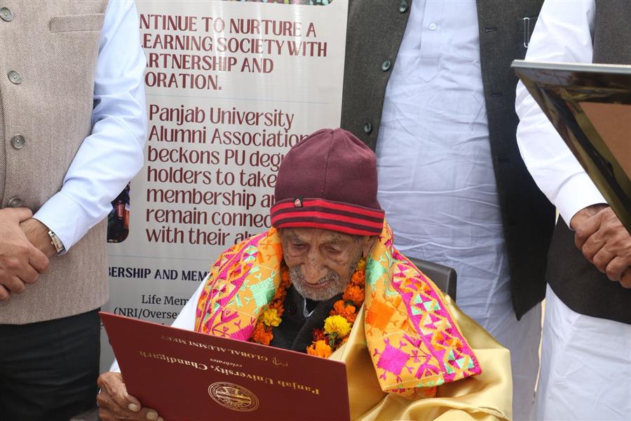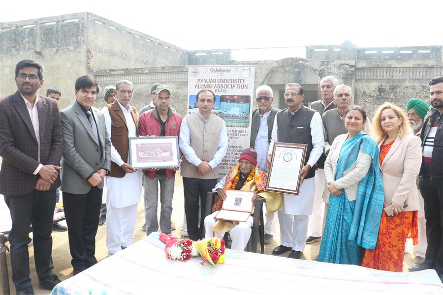 चंडीगढ़, 31 जनवरी 2026। पंजाब यूनिवर्सिटी चंडीगढ़ ने आज अपने सबसे वरिष्ठ जीवित पूर्व छात्र और अविभाजित पंजाब के सबसे वरिष्ठ जीवित पूर्व विधायक, 104 वर्षीय सही राम बिश्नोई को गांव सकताखेड़ा, डबवाली के निकट, उनके निवास पर जाकर सम्मानित किया। विश्वविद्यालय ने उन्हें 'साइटेशन ऑफ ऑनर' प्रदान किया।