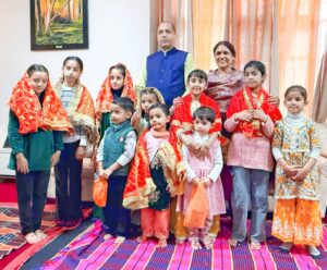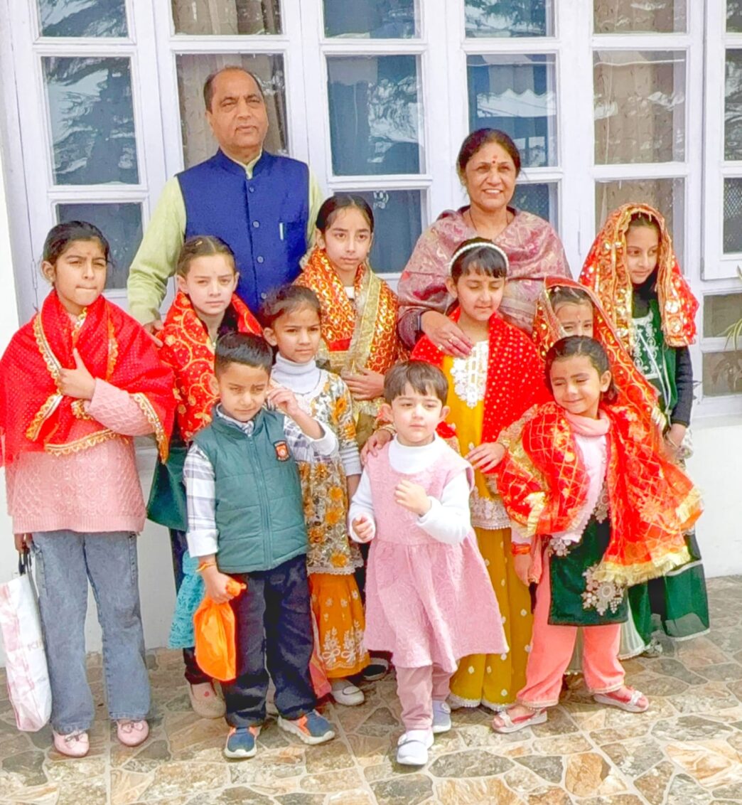 शिमला : अपने आधिकारिक आवास पर कँचक पूजन करते नेता प्रतिपक्ष जयराम ठाकुर एवं डॉ साधना ठाकुर।