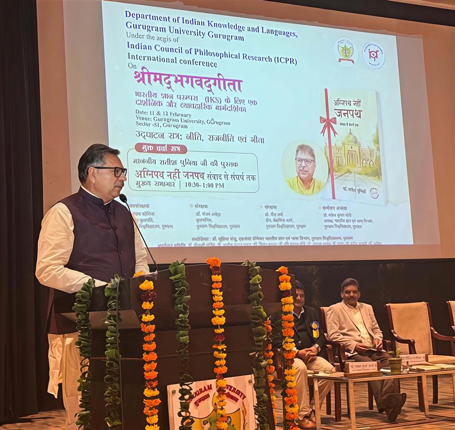 भाजपा प्रदेश प्रभारी डा. सतीश पूनिया ने गुरुग्राम यूनिवर्सिटी में श्रीमद्भगवद् गीता पर अंतरराष्ट्रीय कॉन्फ्रेंस में नीति, राजनीति एवं गीता’ विषय पर युवाओं से संवाद किया
