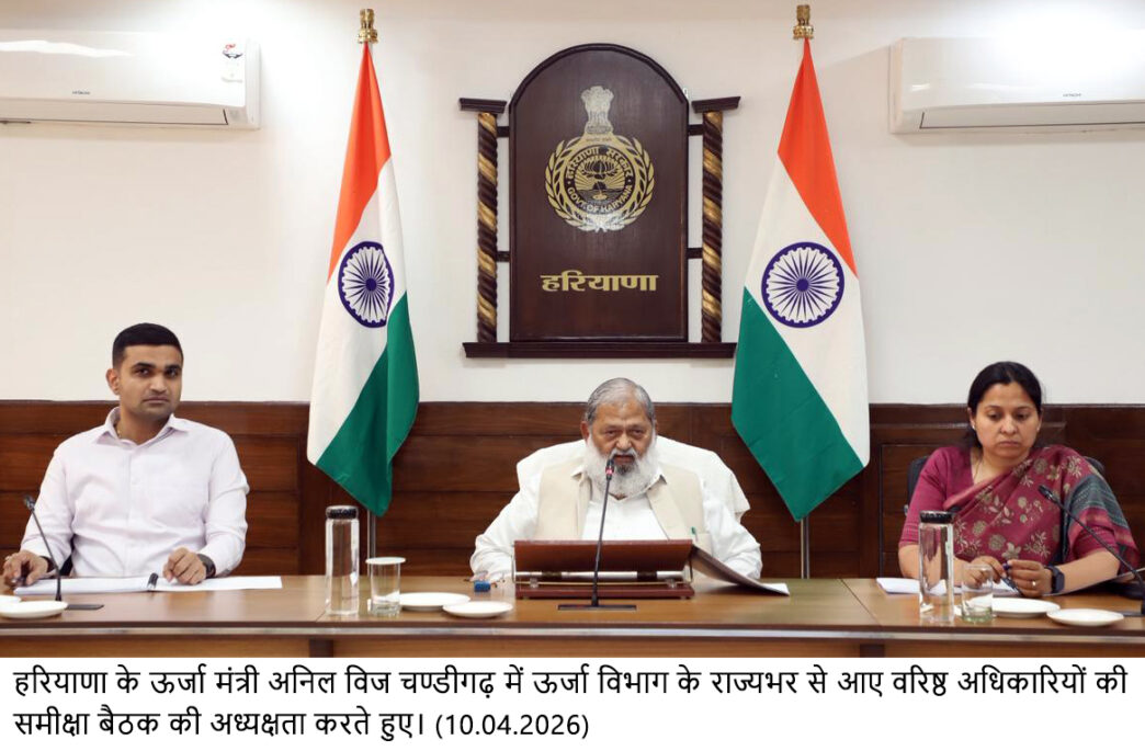 चण्डीगढ़, 10 अप्रैल। हरियाणा के ऊर्जा मंत्री अनिल विज ने राज्य को ऊर्जा क्षेत्र में अग्रणी बनाने के उद्देश्य से ऊर्जा विभाग के अधिकारियों को महत्वपूर्ण दिशानिर्देश दिए। उन्होंने निर्देश दिया कि इनका प्रभावी क्रियान्वयन सुनिश्चित करते हुए प्रदेश के बिजली उपभोक्ताओं को गुणवत्तापूर्ण एवं निर्बाध विद्युत आपूर्ति प्रदान की जाए। उन्होंने घोषणा करते हुए कहा कि सरकारी भवनों में सोलर सिस्टम तथा पीएम सूर्य घर योजना के प्रभावी क्रियान्वयन के तहत प्रथम, द्वितीय तथा तृतीय स्थान पर आने वाले सर्कल को अवार्ड दिया जाएगा।