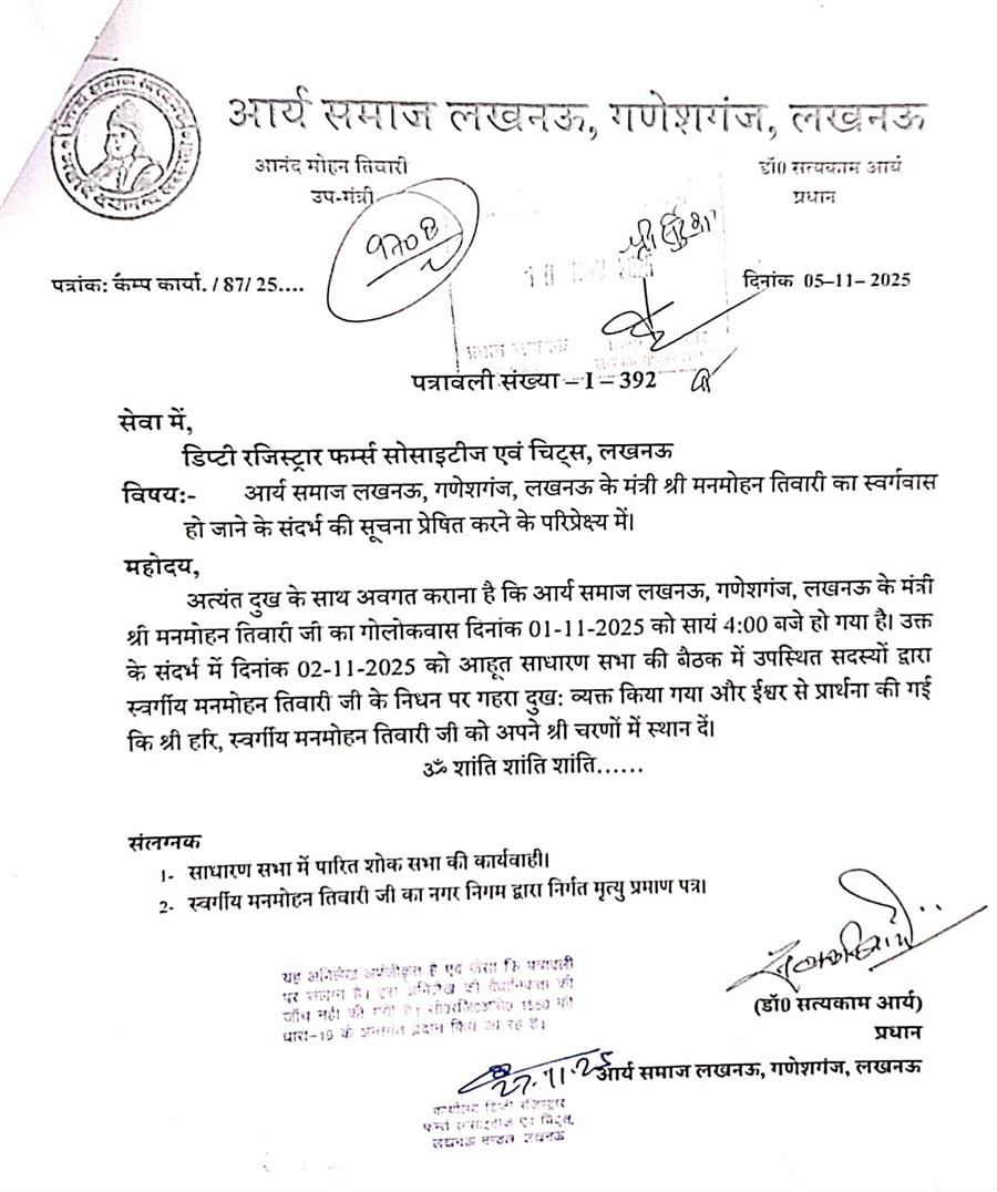 2022 में बालिका इंटर कॉलेज को एक अन्य फर्जी कमेटी बनाकर उस पर कब्जे की तैयारी की गई, जिस पर जिला विद्यालय निरीक्षक कार्यालय में मामला फंस गया और उस पर कंट्रोलर बैठा दिया, तब से अब तक बालिका इंटर कॉलेज में कंट्रोलर बैठा हुआ है जबकि 2023 में एक अन्य विवाद के चलते इंटर कॉलेज के प्रबंधन का विवाद डेप्युटी रजिस्ट्रार चिट्स फंड्स एंड सोसाइटी, मंडलायुक्त और हाईकोर्ट में जाकर फंस गया। इस उठापठक में इंटर कॉलेज का मैनेजमेंट भी मनमोहन तिवारी के हाथ में आ गया, जिसको लेकर हाईकोर्ट में रिट अभी तक लंबित है। लेकिन उससे भी बड़ा घटनाक्रम 10 अक्टूबर 2025 को आया। दरअसल सोसाइटी एक्ट के तहत तत्कालीन रजिस्ट्रार विनय कुमार श्रीवास्तव ने 10 अक्टूबर 2020 से 5 वर्ष की अवधि के लिए आर्य समाज लखनऊ गणेशगंज लखनऊ समिति को नवीनीकृत किया था, इसके पहले कि अगले वर्ष का नवीनीकरण हो पाता, मैनेजर मनमोहन तिवारी का निधन हो गया।