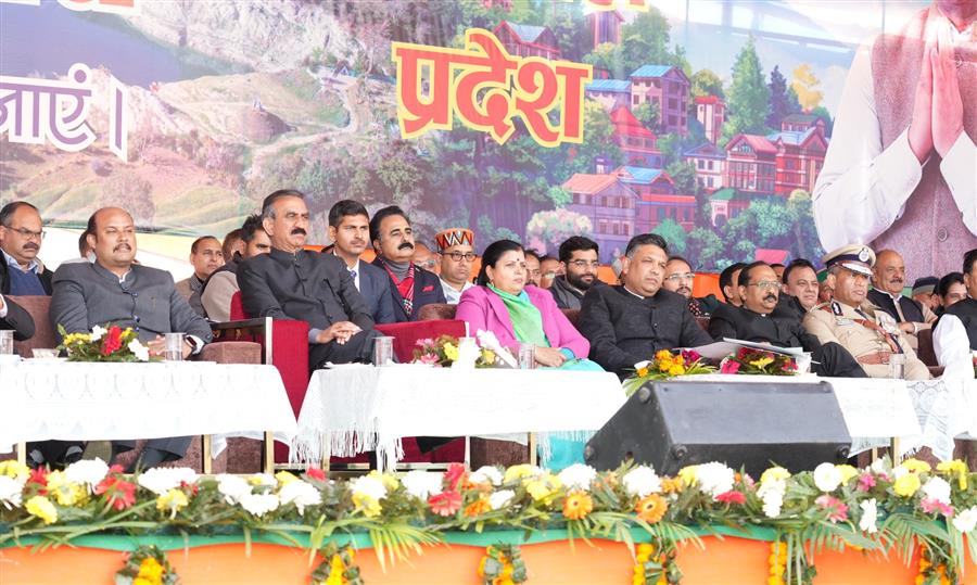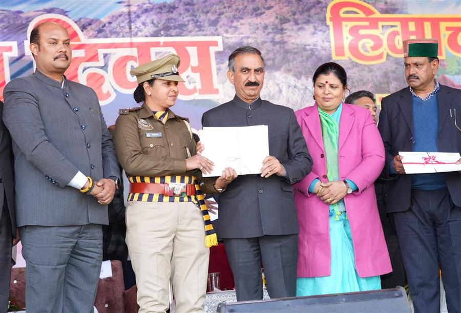 शिमला, 25 जनवरी, 2026। हिमाचल प्रदेश के मुख्यमंत्री ठाकुर सुखविन्द्र सिंह सुक्खू ने आज कांगड़ा जिले के प्रागपुर में आयोजित 56वें पूर्ण राज्यत्व दिवस समारोह के दौरान हिमाचल प्रदेश के लोगों को शुभकामनाएं दीं। यह प्रागपुर में आयोजित पहला समारोह था। मुख्यमंत्री ने राष्ट्रीय ध्वज फहराया और परेड टुकड़ियों से सलामी ली। परेड का नेतृत्व परेड कमांडर आईपीएस अधिकारी तरुणा ने किया। परेड में आईआरबीएन जंगलबैरी, आईआरबीएन सकोह, आईआरबीएन पंडोह, पुलिस जिला नूरपुर, होमगार्ड महिला बटालियन धर्मशाला, होमगार्ड पुरुष और महिला बटालियन धर्मशाला, एसडीआरएफ पंडोह, धर्मशाला ट्रैफिक पुलिस, वन मित्र, एनसीसी राजकीय महाविद्यालय ढलियारा, स्काउट्स एंड गाइड्स और अन्य इकाइयों ने भाग लिया।