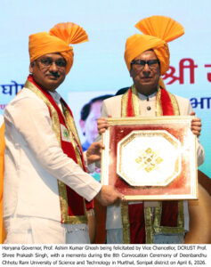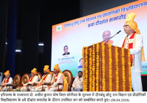चंडीगढ़, 6 अप्रैल। दीनबंधु छोटूराम विज्ञान एवं प्रौद्योगिकी विश्वविद्यालय (डीसीआरयूएसटी) मुरथल, जिला सोनीपत के 8वें दीक्षांत समारोह के अवसर पर विद्यार्थियों को संबोधित करते हुए हरियाणा के राज्यपाल असीम कुमार घोष ने कहा कि आज का दिन केवल उपाधि प्राप्त करने का नहीं, बल्कि नए सपनों, नई जिम्मेदारियों और नए भारत के निर्माण में भागीदारी का दिन है। उन्होंने स्नातक, स्नातकोत्तर और शोधार्थी विद्यार्थियों को शुभकामनाएं देते हुए कहा कि विश्वविद्यालय ने उन्हें 21वीं सदी की चुनौतियों के अनुरूप तैयार किया है, जिससे वे समाज और राष्ट्र के विकास में अग्रणी भूमिका निभा सकें।