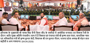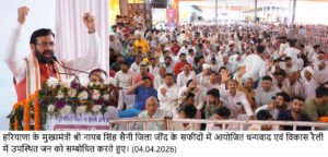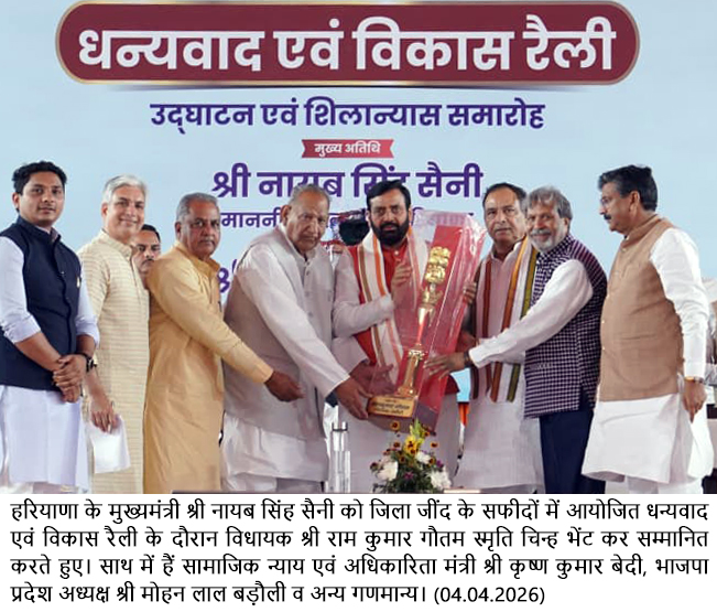 नायब सिंह सैनी ने कहा कि सफीदों की यह भूमि खेती-किसानी के साथ संघर्ष और स्वाभिमान की भूमि है। एक समय था, जब यहां के लोगों को मूलभूत सुविधाओं के लिए भी संघर्ष करना पड़ता था। सड़कों की हालत खराब थी, रोजगार के लिए कुछ लोगों की चौखट पर बैठे रहना पड़ता था। विकास केवल कागजों तक सीमित था, लेकिन आज तस्वीर बदल चुकी है। प्रदेश और देश में जो सकारात्मक परिवर्तन दिखाई दे रहा है, वह मजबूत और दूरदर्शी नेतृत्व का परिणाम है।