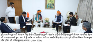 मुख्यमंत्री नायब सिंह सैनी से नई दिल्ली स्थित हरियाणा भवन में सुजुकी के सीईओ तोशीहिरो सुजुकी ने की मुलाकात