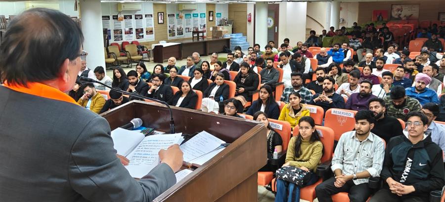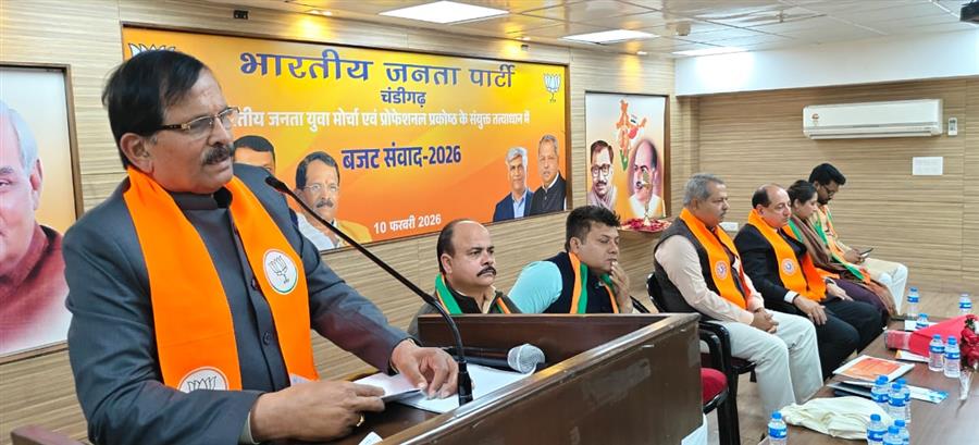 चंडीगढ़ : भारतीय जनता पार्टी चंडीगढ़ प्रदेश कार्यालय, सेक्टर 33 स्थित कमलम में केंद्रीय बजट 2026–27 को लेकर एक प्रेस वार्ता का आयोजन किया गया। प्रेस वार्ता को केंद्रीय विद्युत राज्य मंत्री एवं नवीन एवं नवीकरणीय ऊर्जा राज्य मंत्री तथा उत्तरी गोवा के लोकसभा सांसद श्रीपद येसो नाइक ने संबोधित किया। इस अवसर पर हरियाणा के कैबिनेट मंत्री डॉ. अरविंद शर्मा, प्रदेश अध्यक्ष जितेंद्र पाल मल्होत्रा, प्रदेश महामंत्री संजीव राणा, मीडिया प्रभारी रवि रावत, डॉ. धीरेंद्र तायल तथा प्रोफेशनल सेल के संयोजक राकेश भल्ला भी उपस्थित रहे।