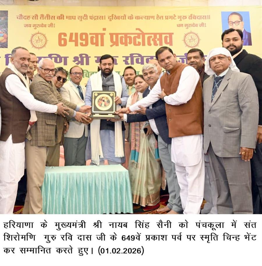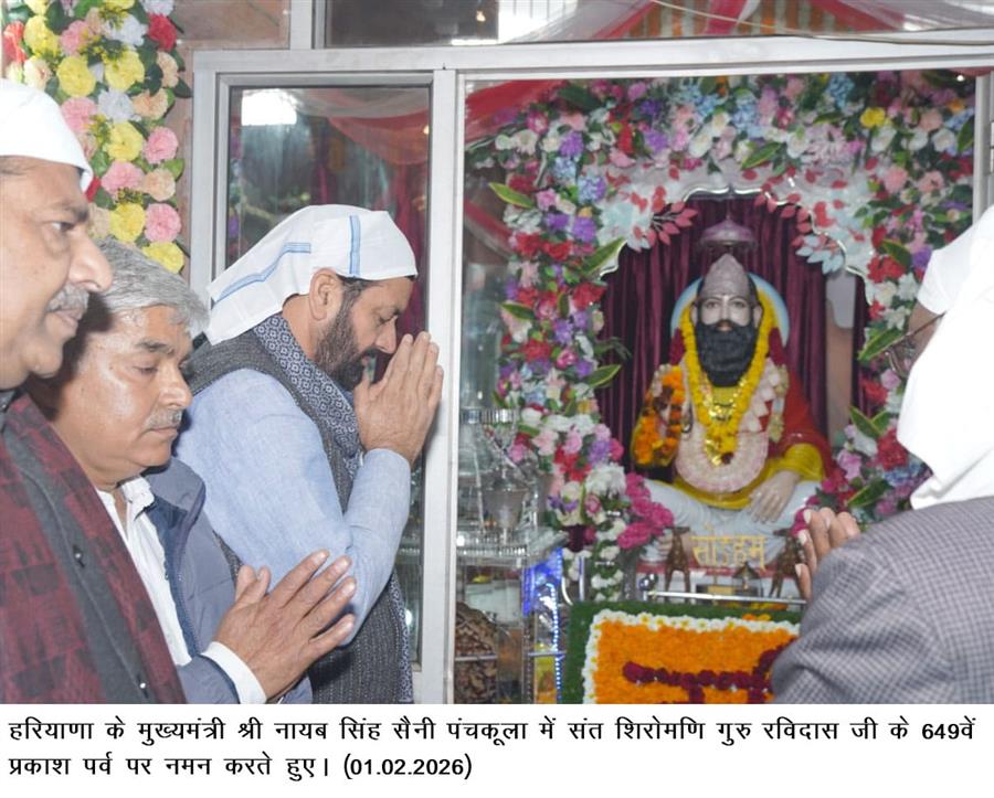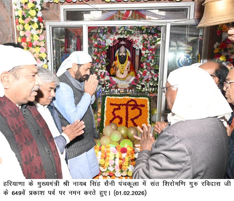 इससे पहले मुख्यमंत्री ने संत शिरोमणि श्री गुरु रविदास जी के प्रकटोत्सव पर श्री गुरु रविदास भवन सेक्टर-15 पहुंचकर गुरु रविदास मंदिर में माथा टेक आर्शीवाद लिया और प्रदेशवासियों की सुख एवं समृद्धि की कामना की। इस अवसर पर श्री गुरु रविदास सभा पंचकूला ने मुख्यमंत्री नायब सिंह सैनी को स्मृति चिन्ह देकर सम्मानित किया।