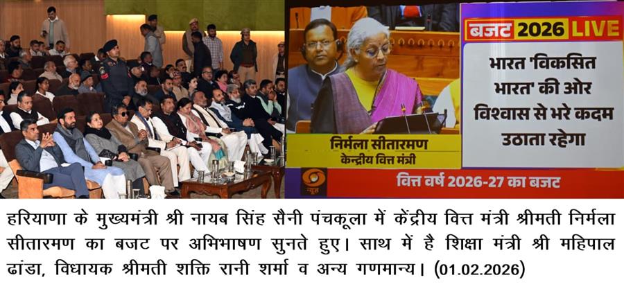 चंडीगढ़, 1 फरवरी। हरियाणा के मुख्यमंत्री नायब सिंह सैनी ने आज केंद्रीय वित्त मंत्री द्वारा संसद में पेश किए गए आम बजट को विकसित भारत के संकल्प को सिद्ध करने वाला एक दूरदर्शी और ऐतिहासिक दस्तावेज बताते हुए कहा कि यह बजट सही मायनों में जनहित और अंत्योदय की भावना को समर्पित है। उन्होने कहा कि इस समावेशी बजट से हरियाणा में औद्योगिक, इन्फ्रास्ट्रक्चर, एमएसएमई, बायो फार्मा, स्वास्थ्य, ग्रामीण उद्योग, कृषि एवं खेल क्षेत्र को और गति मिलेगी।
