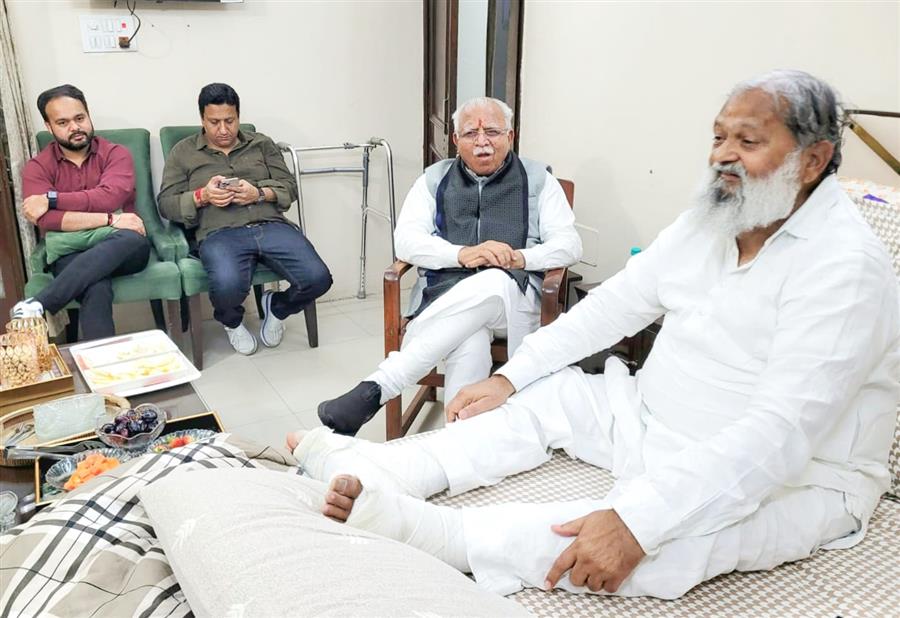गौरतलब है कि बीते दिनों अपने घर के ही बाथरूम में गिरने की वजह से मंत्री विज के दोनों पांवों में हेयर लाइन फ्रैक्चर हो गया था, जिसके बाद से वह अंबाला की शास्त्री कॉलोनी स्थित अपने निज निवास में ही स्वास्थ्य लाभ ले रहे हैं। मंत्री अनिल विज के दोनों पांव में फ्रैक्चर की वजह से चिकित्सकों ने उन्हें आराम की सलाह दी है।