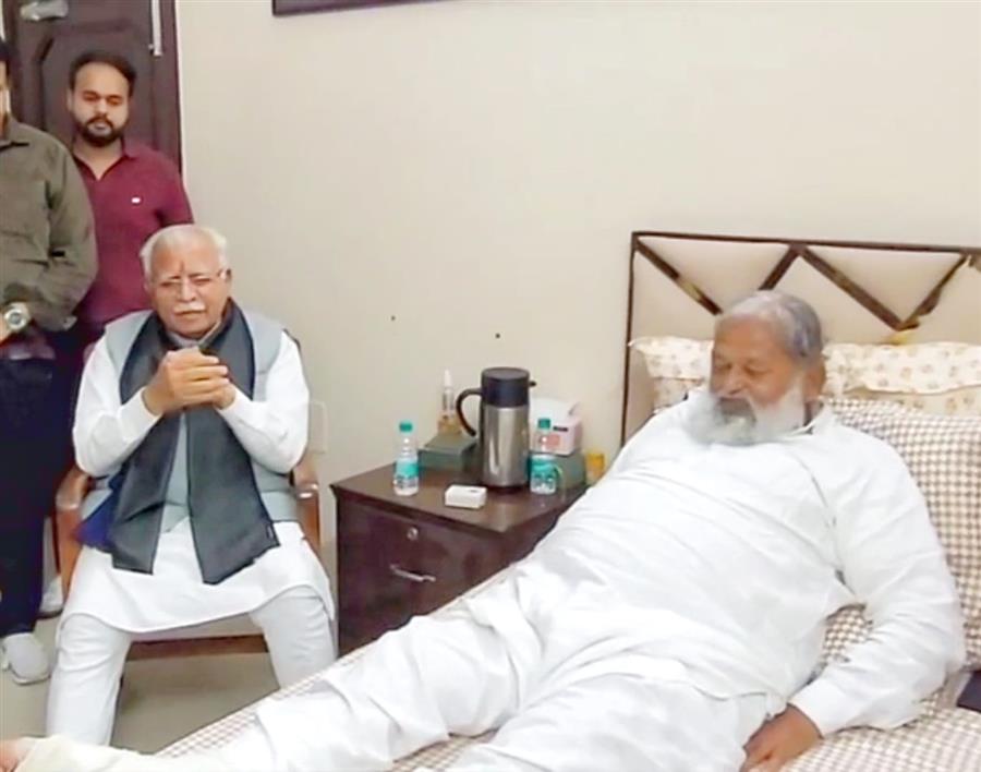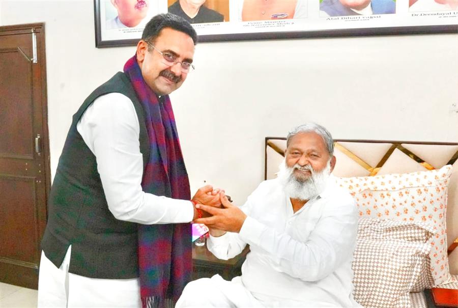 अंबाला। हरियाणा के ऊर्जा, परिवहन एवं श्रम मंत्री अनिल विज से आज शाम उनके आवास पर केंद्रीय ऊर्जा मंत्री मनोहर लाल ने मुलाकात करते हुए उनका हालचाल जाना और उनके उत्तम स्वास्थ्य एवं दीर्घायु होने की मंगलकामना की।