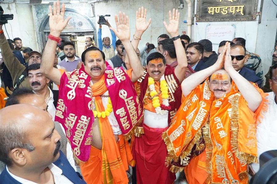 उज्जैन। मध्य प्रदेश के मुख्यमंत्री डॉ. मोहन यादव ने आज मंगलवार को केन्द्रीय स्वास्थ्य मंत्री जे.पी. नड्डा तथा मध्यप्रदेश प्रभारी महेंद्र सिंह के साथ श्री महाकालेश्वर मंदिर में पहुंचकर बाबा महाकाल का पूजन-अभिषेक किया।