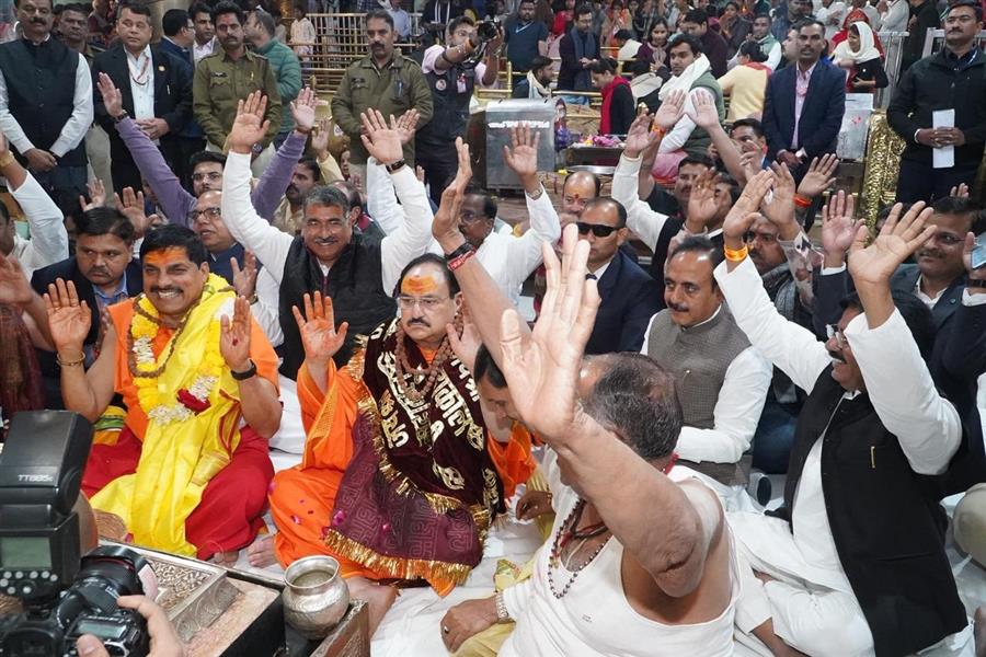 केंद्रीय मंत्री नड्डा ने मुख्यमंत्री डॉ मोहन यादव के साथ किया महाकाल बाबा का पूजन श्रृंगार
