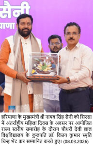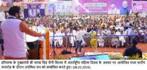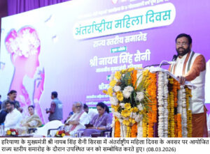 नायब सिंह सैनी ने समारोह में उपस्थित महिलाओं को अंतर्राष्ट्रीय महिला दिवस की बधाई देते हुए कहा कि आज एक ओर जहां पूरा विश्व अंतर्राष्ट्रीय महिला दिवस मना रहा है, वहीं दूसरी ओर हरियाणा की ऐतिहासिक धरती पानीपत पर शुरू हुए ‘बेटी बचाओ-बेटी पढ़ाओ’ अभियान के 11 गौरवपूर्ण वर्ष पूरे हुए हैं।