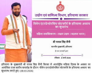 अंतर्राष्ट्रीय महिला दिवस पर मुख्यमंत्री ने की ‘महिला उद्यमिता मंच’ के हरियाणा चैप्टर की शुरुआत