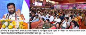 नायब सिंह सैनी ने कहा कि पिछले 11 सालों में प्रधानमंत्री नरेंद्र मोदी के नेतृत्व में देश व प्रदेश में महिलाओं के प्रति वातावरण भी बदला है और महिलाओं का सम्मान भी बढ़ा है। उनके आह्वान से बेटियों को बचाया व पढ़ाया, चूल्हें के धुएं से आजादी दी, खुले में शौच जाने के अपमान से मुक्ति दी, तीन तलाक के दुःख से छुटकारा दिलाया और देश की सर्वोच्च संसद में आपके 33 प्रतिशत प्रतिनिधित्व का कानून बनाकर महिलाओं को देश को चलाने में हक दिया।