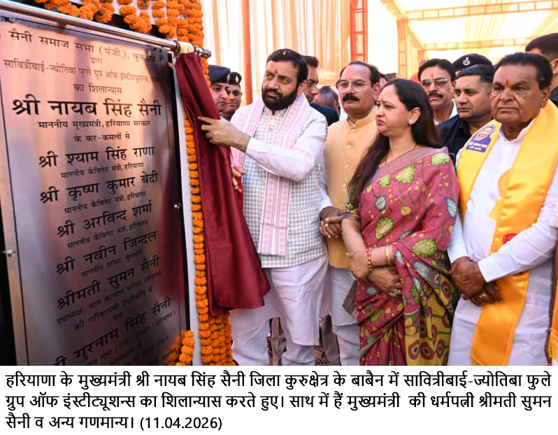 मुख्यमंत्री शनिवार को कुरुक्षेत्र के बाबैन में सैनी सभा, कुरुक्षेत्र द्वारा आयोजित महात्मा ज्योतिबा फुले जयंती समारोह एवं सावित्रीबाई ज्योतिबा फुले ग्रुप ऑफ इंस्टीट्यूशन्स के शिलान्यास के मौके पर आयोजित कार्यक्रम में शिरकत कर रहे थे। इस दौरान हरियाणा के कृषि मंत्री श्याम सिंह राणा भी मौजूद थे।