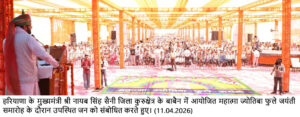 कार्यक्रम में उपस्थित जनसमूह को संबोधित करते हुए मुख्यमंत्री नायब सिंह सैनी ने कहा कि बड़े ही गर्व और गौरव की बात है कि आज हम ऐसे महापुरुष की जयंती मना रहे हैं, जिन्होंने अपने विचारों, अपने संघर्षों और अपने कर्मों से भारत के सामाजिक इतिहास को नई दिशा दी। इस पावन अवसर पर मैं महात्मा ज्योतिबा फुले को श्रद्धापूर्वक नमन करता हूं। यह राज्यस्तरीय समारोह सामाजिक जागरण, शिक्षा और समानता के उस संकल्प को पुनर्जीवित करने का अवसर है, जिसे महात्मा फुले जी ने अपने जीवन का उद्देश्य बनाया। ऐसे महापुरुषों, संतों और महात्माओं के संदेश को नई पीढ़ियों तक पहुंचाने के लिए सरकार उनकी जयंती राज्य स्तर पर मनाती है। इसके लिए सरकार ने ‘संत-महापुरुष विचार प्रसार एवं सम्मान योजना’ चलाई हुई है।