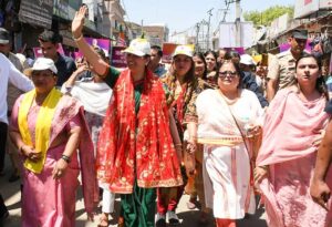 हरियाणा बाल कल्याण परिषद की उपाध्यक्ष सुमन सैनी बुधवार को नारी शक्ति वंदन पदयात्रा के अवसर पर श्री रघुनाथ मंदिर के पास आयोजित कार्यक्रम में बतौर मुख्य अतिथि बोल रही थीं। उन्होंने कार्यक्रम का शुभारंभ दीप प्रज्वलित कर व भारत माता के चित्र पर पुष्प अर्पित करके किया। इसके पश्चात उन्होंने हरी झंडी दिखाकर नारी शक्ति वंदन पदयात्रा को रवाना किया। यह पदयात्रा श्री रघुनाथ मंदिर चौक से शुरू होकर गांधी चौक, सदर बाजार, जवाहर मार्किट, नावेल्टी चौक, दयालपुरा गेट, कर्ण गेट पर समाप्त हुई। इससे पहले कार्यक्रम स्थल पर सूचना, जनसंपर्क एवं भाषा विभाग की ड्रामा पार्टी के कलाकारों ने नारी शक्ति वंदन अधिनियम व महिलाओं के लिए चलाई जा रही जनकल्याणकारी योजनाओं पर आधारित लोक गीत के माध्यम से महिलाओं को जागरूक किया।