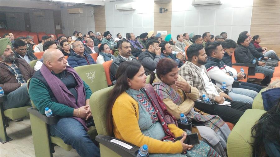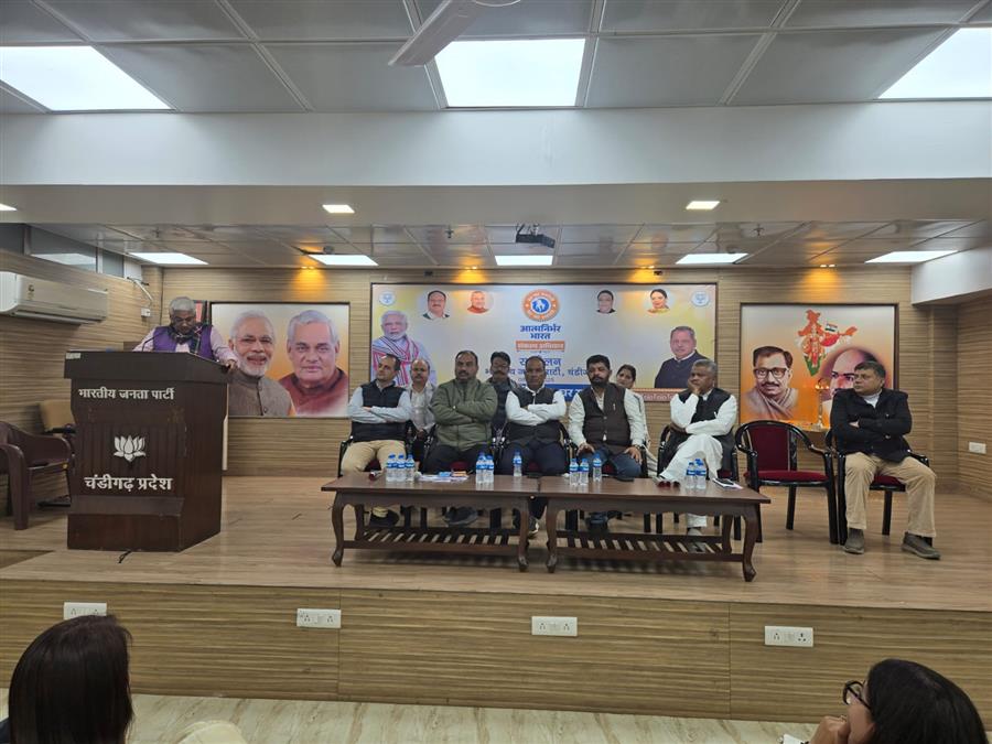 चंडीगढ़ : भारत रत्न पूर्व प्रधानमंत्री अटल बिहारी वाजपेई की जन्म शताब्दी के अवसर पर भारतीय जनता पार्टी चंडीगढ़ द्वारा अटल स्मृति वर्ष मनाया जा रहा है। इसी क्रम में भारतीय जनता पार्टी चंडीगढ़ प्रदेश कार्यालय में एक महत्वपूर्ण कार्यशाला का आयोजन किया गया। कार्यशाला में प्रदेश के सभी पदाधिकारी, जिलों के पदाधिकारी, विभिन्न मोर्चों के इंचार्ज, प्रकोष्ठों एवं विभागों के इंचार्ज बड़ी संख्या में उपस्थित रहे। कार्यक्रम की अध्यक्षता प्रदेश उपाध्यक्ष भारत कुमार ने की, जबकि मुख्य वक्ता प्रदेश महामंत्री रामवीर भट्टी रहे।